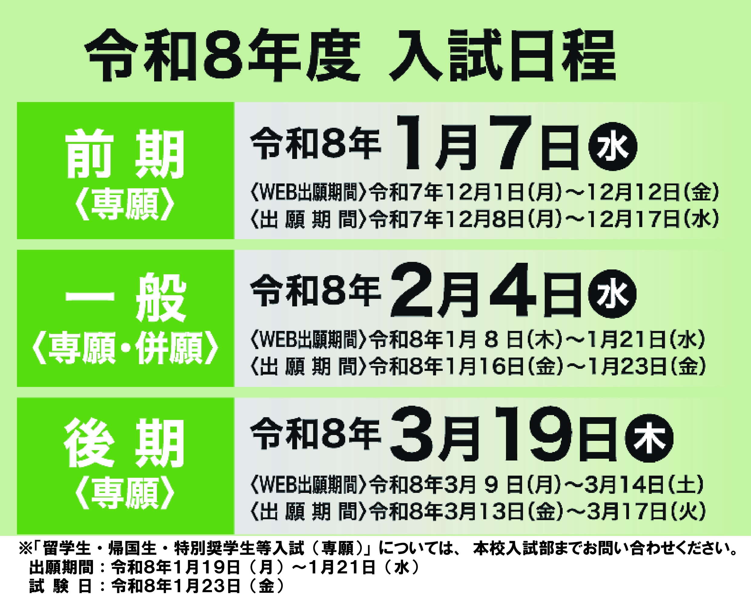 出願手続きはこちらから 前期入試(専願)※準備中です