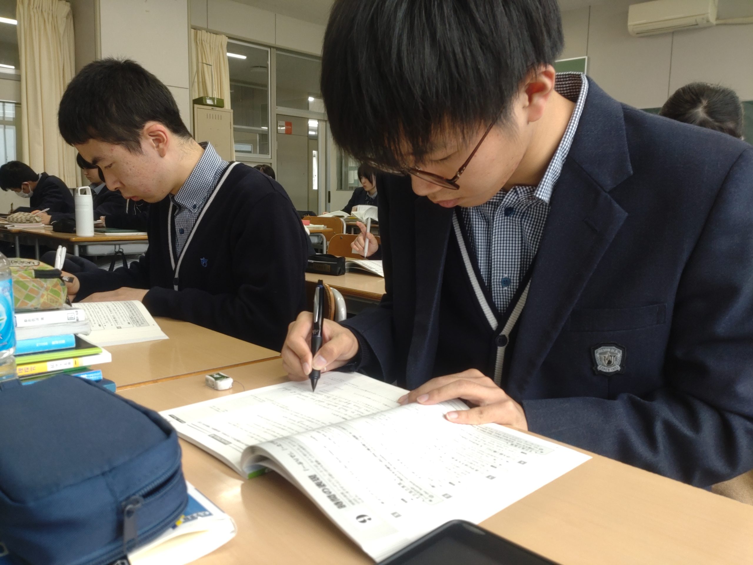 本日は3年特別進学コースの英語コミュニケーションⅢへ訪問しました。受験に頻出する英文法の問題に取り組んでいました。生徒は、現在形や過去形の表現に注意しながら英訳文を作成し、担当教員から添削を受けていました。要点をまとめて、忘れないように復習をしましょう!