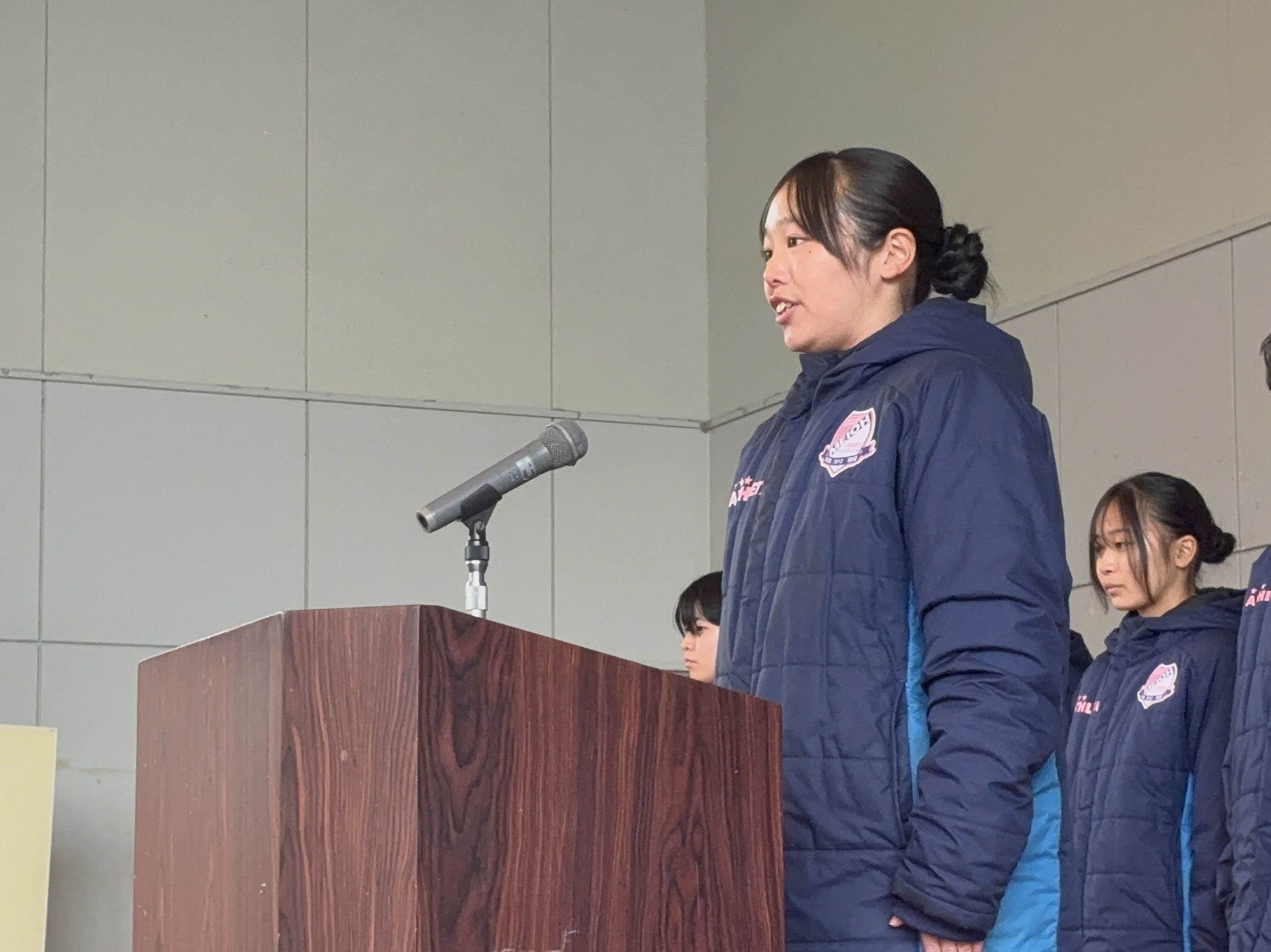 本日は女子サッカー部の壮行会を行いました。今月29日から兵庫県で開催される第34回全日本高等学校女子サッカー選手権大会に向けて、主将の三浦晴さんが力強く決意と抱負を述べていました。初戦の相手は、香川県代表の四国学院大学香川西高校です。ご声援お願いします!