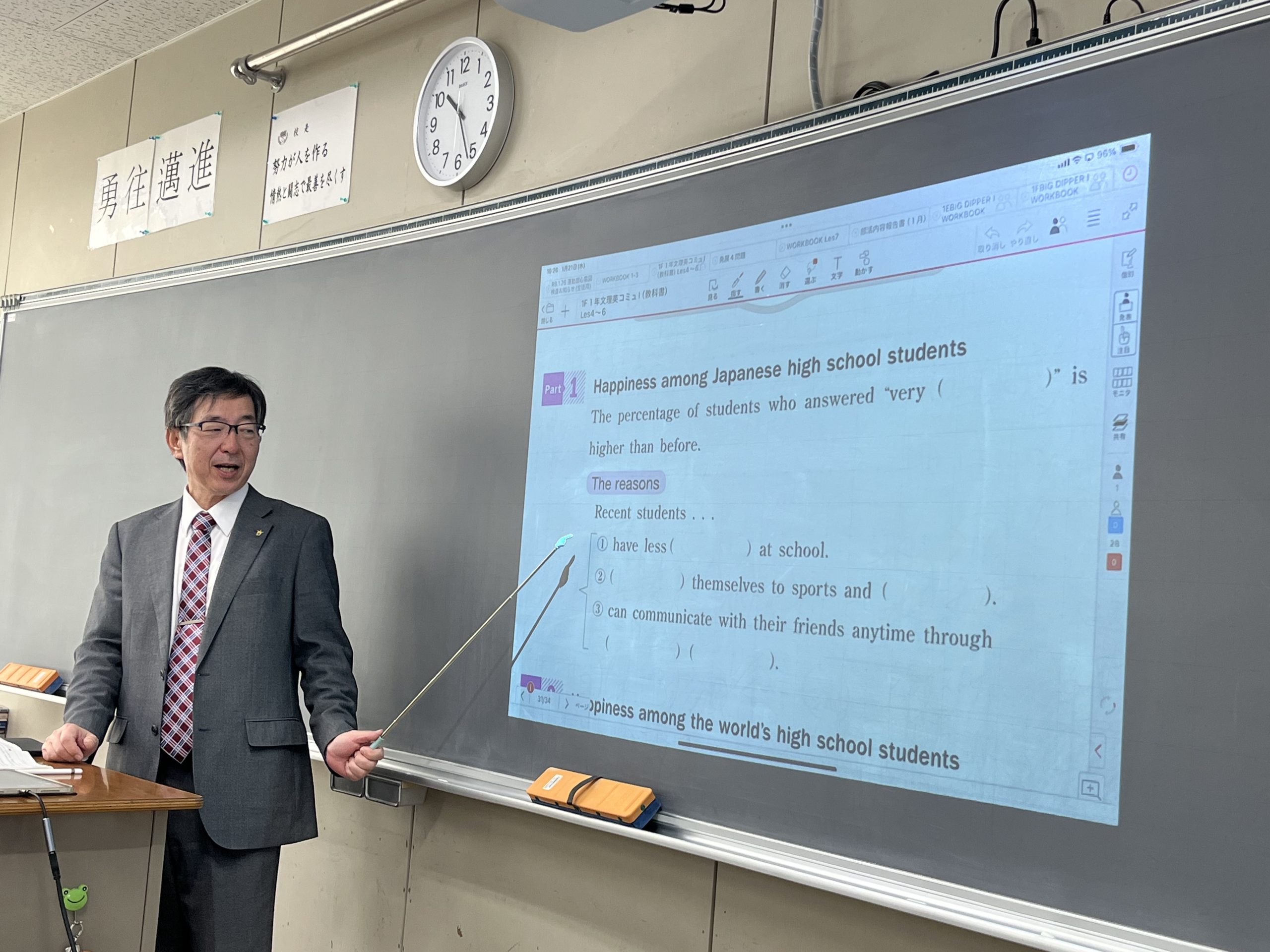 本日は1年文理・デジタルコースの英語コミュニケーションⅠへ訪問しました。生徒は、評論文を読解し、クラスメイトと話し合いながら英語で要約文を作成していました。互いに意見を交わすことで、一人では気づけなかった視点に触れ、表現力を高めることができました。