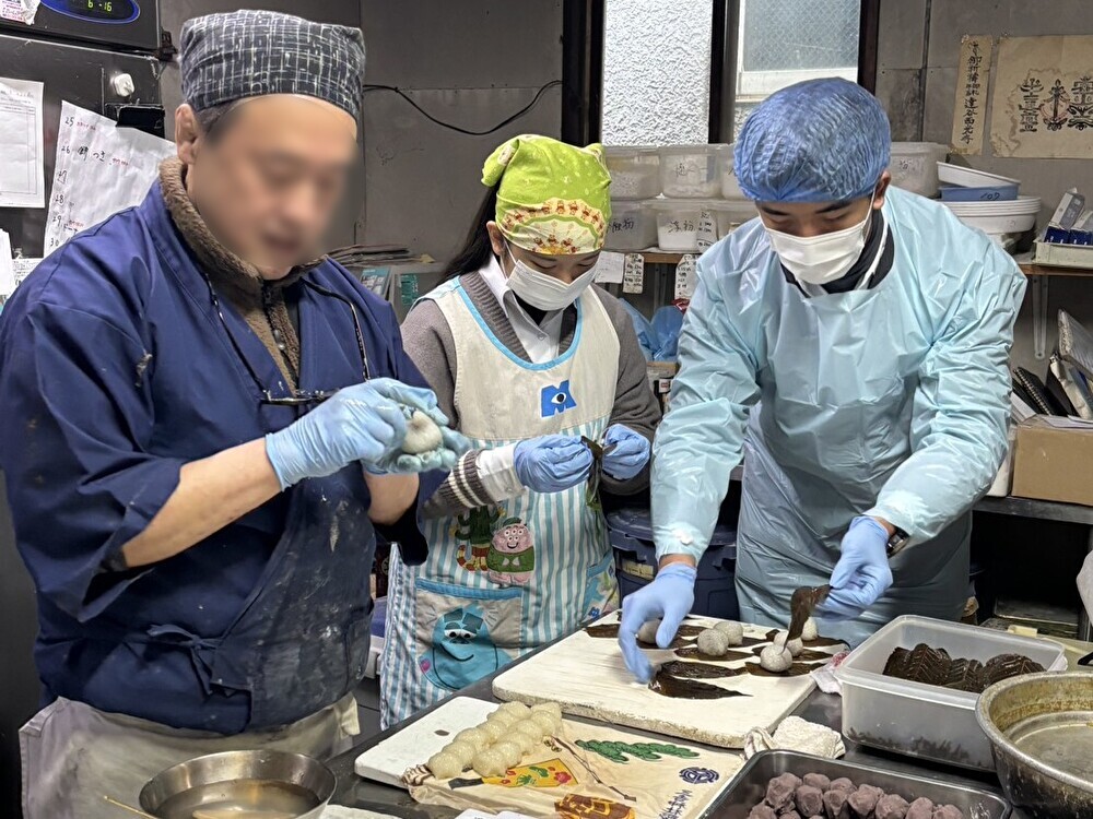 本日は、台湾淡水高級商工職業学校から来た短期留学生2名が秋田市内を散策しました。午前は和菓子屋の三松堂を訪問し、和菓子作りを体験しました。午後は秋田酒類製造株式会社の酒蔵を見学し、伝統的な酒造りの手法について説明を受けていました。次回は明桜生とスキー体験で交流します!