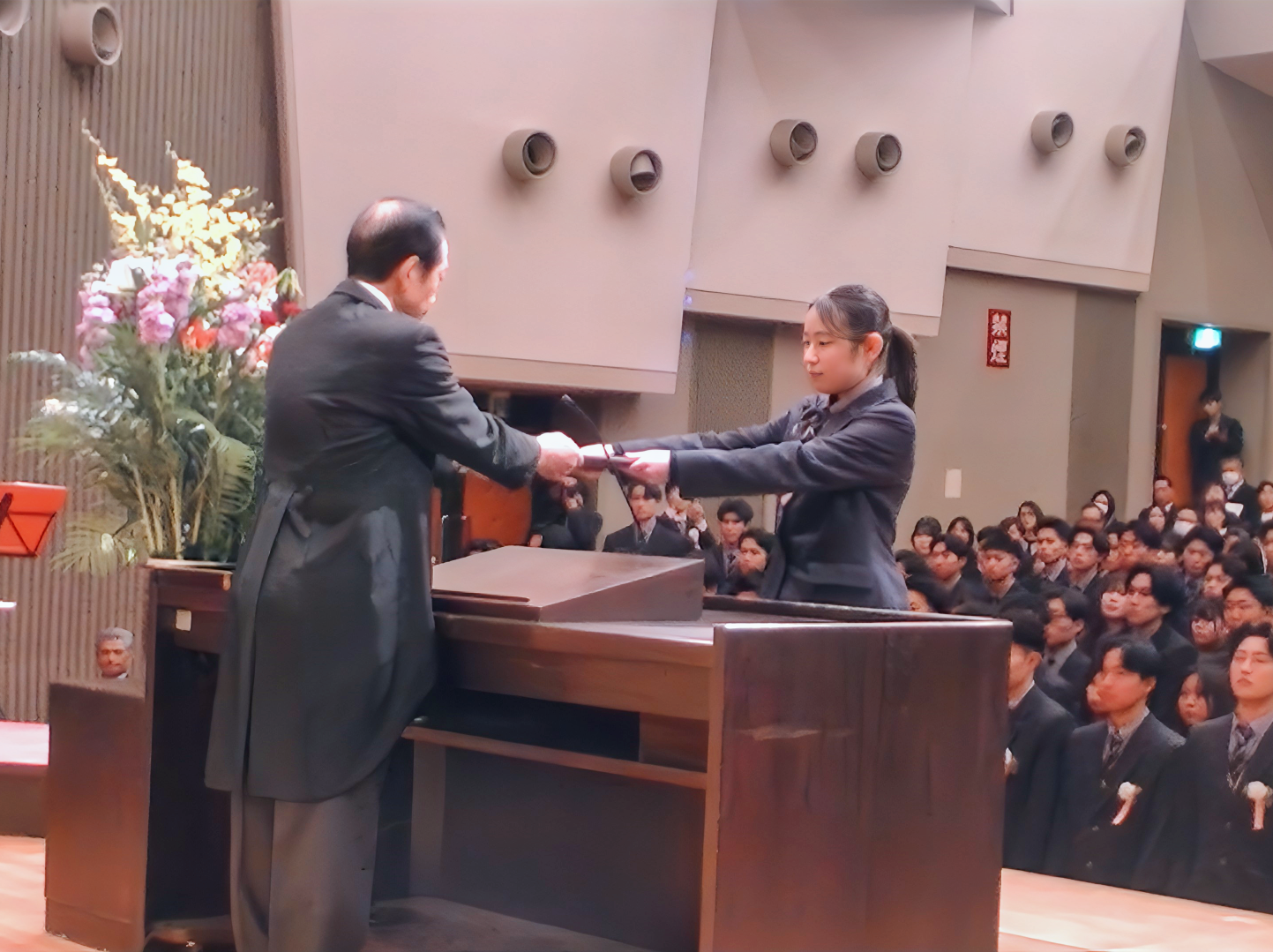 卒業証書授与 代表:林 七海さん(3年F組)