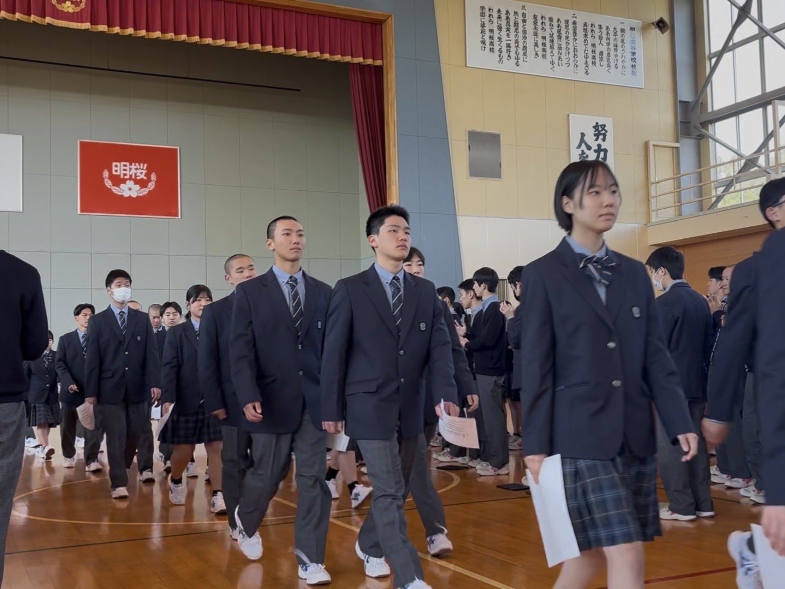 本日は対面式を実施しました。新入生は吹奏楽部の演奏とともに入場し、在校生から温かい拍手で歓迎されました。新入生代表挨拶では小澤雅春さんが1年生としての決意を述べました。明桜高校ではたくさんの楽しい学校生活が待っています。3年間で最高の仲間と思い出をつくりましょう!